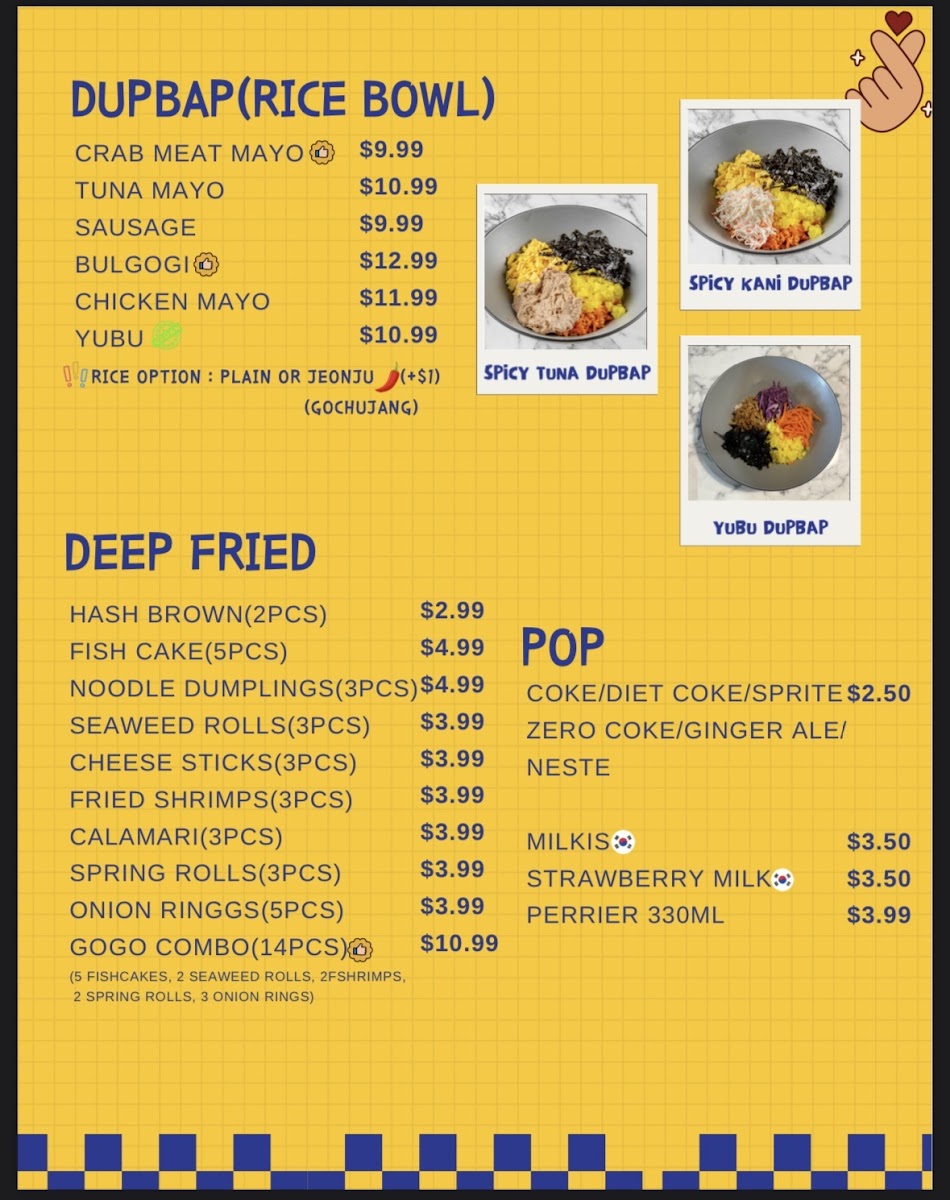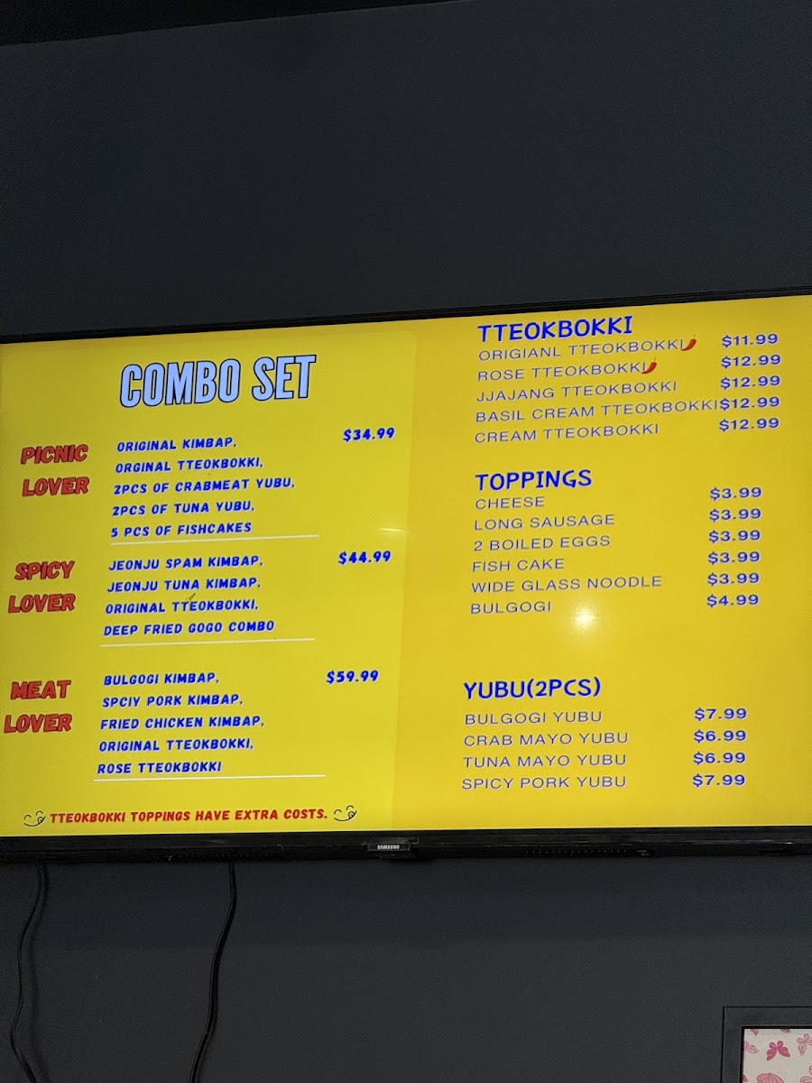 GOGO Kimbap Menu